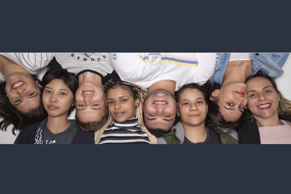 No alto as professoras Carolina Mancuzo, Fabiana Alves e Fernanda Mello; embaixo os estagiários Mariane Pracânica, Anne Abe, Gabriel Buosi, Bruna Leite, Sandra Prata, Beatriz Duarte e Isabela Sanches