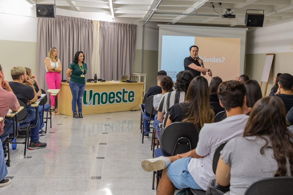 Esta semana, a Escola de Comunicação e Estratégias Digitais da Unoeste recebeu de volta os alunos para mais um semestre de aulas e contou também com vários ‘rostinhos’ novos para os primeiros termos dos cursos de Jornalismo, Publicidade e Propaganda e Marketing. Durante os três primeiros dias, os calouros puderam conhecer a estrutura da universidade, acompanhados do coordenador da Escola Tchiago Inague e outros professores.