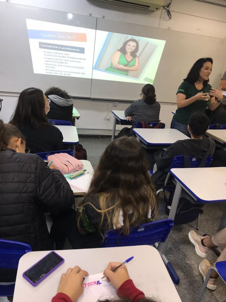 A professora da escola, Glaucia Aparecida Rosa Cintra, explica que o objetivo é formar jovens para serem protagonistas da sociedade e, principalmente,que saibam pesquisar sobre a veracidade das informações recebidas. “A importância da disciplina é que os jovens conheçam a produção da notícia e evitem a propagação de fake news”, reforça. Faz parte da disciplina a produção de um jornal.